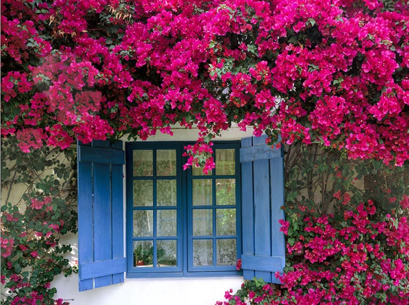 - The bougainvillea is a large, vine-like woody plant that grows quickly and healthily. It has colorful leaves that blossom all year round.